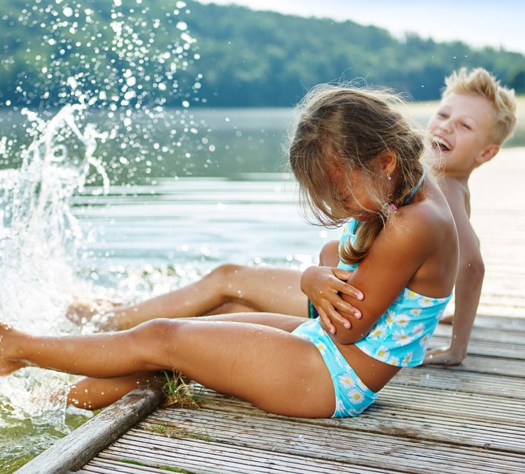 Der liebevoll gestaltete See mit dem eigenen Kinderbereich verspricht auch die jüngsten Herzen glücklich zu stimmen. Entweder wird der See langsam über das Ufer begangen oder die mutigen Badegäste springen vom Steg kopfüber ins Wasser. Direkt daneben ist für die Kleinen ein kleiner Spielbach mit Steinen und Sand angelegt worden, der für stundenlangen Badespaß sorgt.