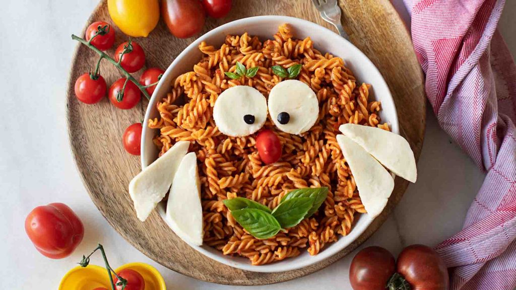 Hu-hu wer schaut denn da aus der Schüssel? Diese fröhlichen Eulen aus Recheis Goldmarke Mini Dralli bringen Kinderaugen zum Strahlen und machen das Osteressen zu einem liebevollen Familienmoment. Die frische Tomaten-Kräuter-Sauce ist schnell gekocht und die niedlichen Eulengesichter dürfen die kleinen Küchenhelfer*innen selbst gestalten.