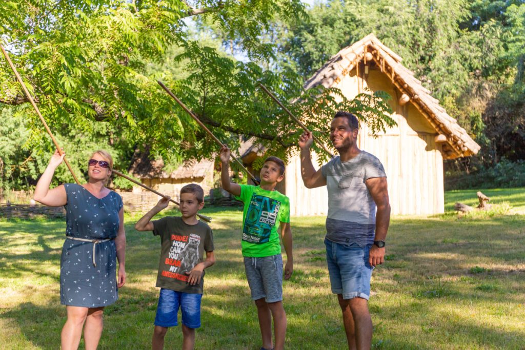 An jedem Dienstag bis Freitag in den Sommerferien finden täglich zwei spannende Aktivführungen für die ganze Familie durch das archäologische Freigelände statt. Um 13 Uhr können sich große und kleine Besucher*innen auf eine Entdeckungsreise in die Steinzeit begeben, wo sich beim Schwirrholz drehen und Speerwerfen der Lebensalltag unserer Vorfahren entdecken lässt. Die Metallzeiten werden um 15 Uhr erkundet. In den bronze- und eisenzeitlichen Werkstätten kann Funken schlagen und Spinnen selbst ausprobiert werden.