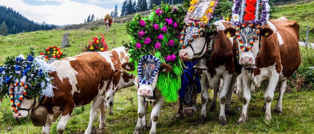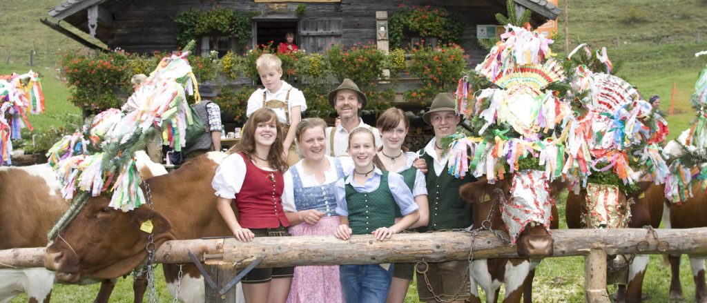 Hunderte Rinder verbringen ihre Sommerfrische auf 46 Almen in rund 2.000 Meter Höhe oberhalb von Wildschönau in Tirol. Bevor der Almsommer zu Ende geht, pflegen die „Almerer“ einen besonderen Brauch: Mit deftigem Essen und gemütlichem Beisammensitzen feiern sie die Gru-Nacht, die letzte Nacht vor dem Almabtrieb. „Gru-Nacht“ ist ein altes deutsches Wort und bezeichnet eine Nacht, in der fröhliches Feiern die Nachtruhe verkürzt. Ein bisschen Nachtruhe sollten sich die Almerer jedoch gönnen. Am Tag des Almabtriebs, dieses Jahr am 21. September, gilt es, die aufwendig und bunt geschmückten Rinder sicher ins Tal zu begleiten. Dort werden sie freudig mit Musik erwartet. Für Unterhaltung sorgt außerdem der Handwerks- und Bauernmarkt, wo Spezialitäten wie Brodakrapfen, Schmalznudeln und „Krautinger“, der regionaltypische Rübenschnaps, angeboten werden.