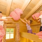Mit mehreren Schlafzimmern und zwei Bädern bietet die Hütte genug Ruhe- und Rückzugsmöglichkeiten. Die Küche spielt mit Backofen, Elektroherd, Kühlschrank mit Gefrierfach, Geschirrspüler und Kaffeemaschine alle Stückln. Im Obergeschoss gibt es sogar noch eine weitere Küche und Wohnstube. Während die Großen in den Liegestühlen auf der Sonnenterrasse ausspannen, können die Kleinen die umliegende Natur erforschen.