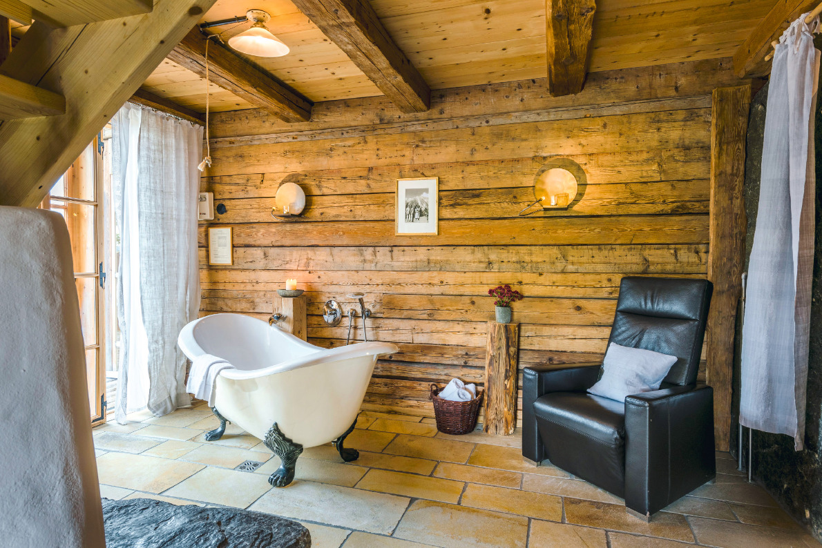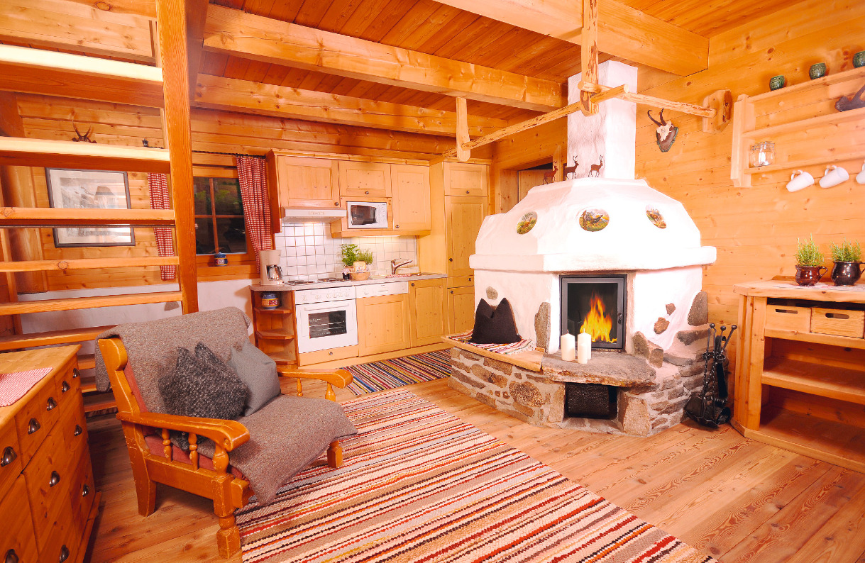 Für das urige Almflair sorgen vor allem der offene Kamin, das uralte Holz-Gebälk und die authentische Einrichtung inklusive Hirschmotiven und Karo-Mustern. Freiluftkino findet hier auf den Holzliegen vor dem Haus statt oder im eigenen Hot Pot. Die Panorama-Zirbenholzsauna ist auf jeden Fall ein heißer Relax-Garant.