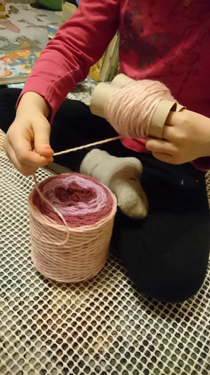 Wir haben derzeit zuhause ein Großprojekt laufen. Nachdem ich meinem Töchterchen ein Online-Handarbeits-Tutorial gezeigt habe, das unter anderem einen selbstgemachten Teppich aus lauter Woll-Bommel zum Ergebnis hat, möchte sie nun für sich auch einen solchen Teppich herstellen. (Dass der jüngere Sohnemann einen solchen natürlich auch haben will, ist klar. Nur hier bin ich es, die einen Pom-Pom nach dem anderen dreht. ;-)) Bisher haben wir nur eine Methode gekannt, diese wolligen „Bälle“ zu machen. Da diese aber etwas langwierig ist – und wir für den Teppich viele dieser Bommel benötigen – haben wir uns nach Alternativen umgeschaut – und auch gefunden.