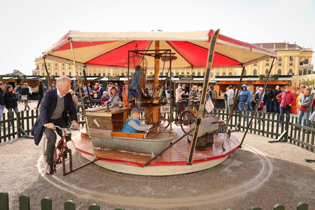 Beim bunten Markttreiben vor dem Schloss Schönbrunn präsentiert sich der Frühling von seiner schönsten Seite. Rund 70 Aussteller:innen und ein kunterbuntes Kinderprogramm laden zum Flanieren, Gustieren und Mitmachen ein. Das nachhaltige Fahrrad-Karussell wartet dabei ebenso auf neugierige Kinder wie Riesen-Ostereier und die Osterhasenwerkstatt.