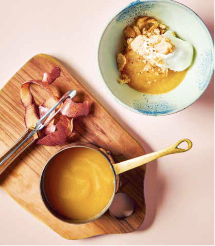1. Koch die Apfelwürfel mit einem Schuss Wasser in einem Topf bei niedriger Hitze, bis sie weich werden und zu zerfallen beginnen.