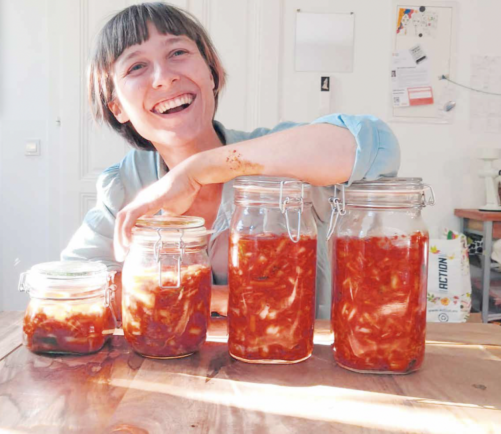 „Alles, was man prinzipiell roh essen kann, kann man auch einlegen und haltbar machen. Durchs Fermentieren bleibt es knackig, wird aber viel verdaulicher und bekömmlicher“, sagt Ernährungswissenschafterin Alma C. Blum, die unter ihrem Namen „Kimchi Garden“ im Wiener Fermentationsstudio „Wild und Wunder“ (Wien 12, Wilhelmstraße 30) einschlägige Workshops abhält. Geeignet sind also beispielsweise Karotten, Kohlrabi, Zwiebel, Rettich, Kürbis, Blumenkohl, Kraut, rote Rüben. Es braucht dafür unjodiertes Salz sowie Gläser mit Gummiring und Einmachbügel. „Gemüsereste einfach in mundgerechte Stücke schneiden, komplett mit Salzlake übergießen, damit kein Sauerstoff hinzukommt und nach zehn Tagen das erste Mal kosten.“ Der Vorteil: Auch schrumpelig gewordenes Gemüse lässt sich so in gesunde und geschmackvolle Snacks verwandeln. Tipp der Fachfrau: „Auch Bio-Gemüse gehört vor dem Einlegen geschält, weil auf der Schale die meisten Hefebakterien sind. Schälen reduziert die Wahrscheinlichkeit, dass sich Kammhefe bildet.“
