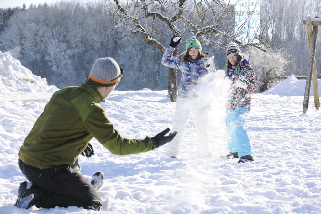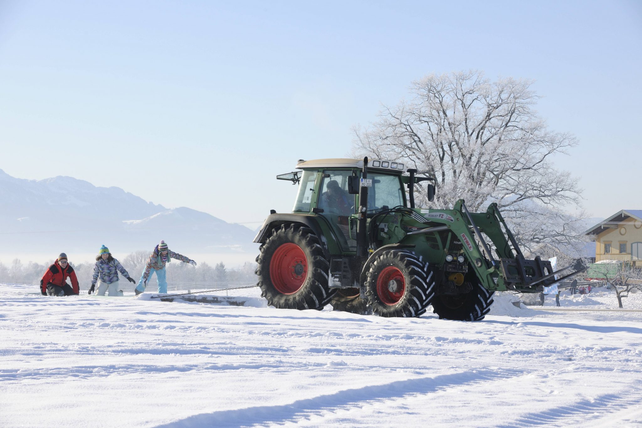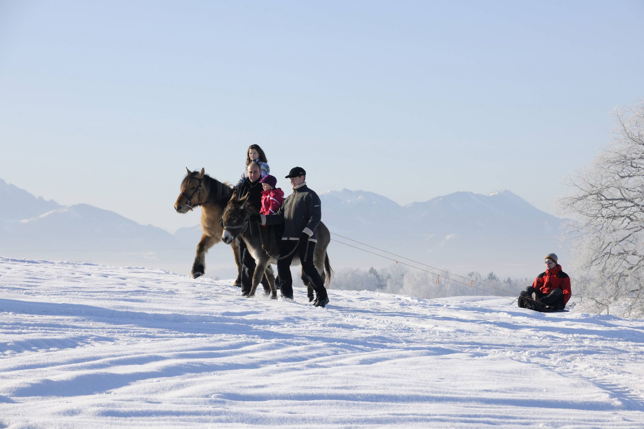 Im Winter verwandelt sich der Moierhof in Truchtlaching in das reinste Wunderland für Kleine und Große. Mit Oma und Opa einen Schneemann bauen, Papa bei der wilden Schneeballschlacht abschießen oder mit neuen Freunden das selbstgebaute Iglu testen. Zwei Einmaligkeiten, die Susanne und Matthias Untermayer ihren kleinen – und junggebliebenen Gästen – bieten, sind der „Fliegende Teppich“, auf dem man sich vom Traktor bei voller Fahrt über den Schnee ziehen lässt. Und das „Sachelschlittenfahren“. Ein Sachelschlitten sieht aus wie ein Sessel und wird mit zwei Holzstöcken angeschoben. So muss Winter sein!
