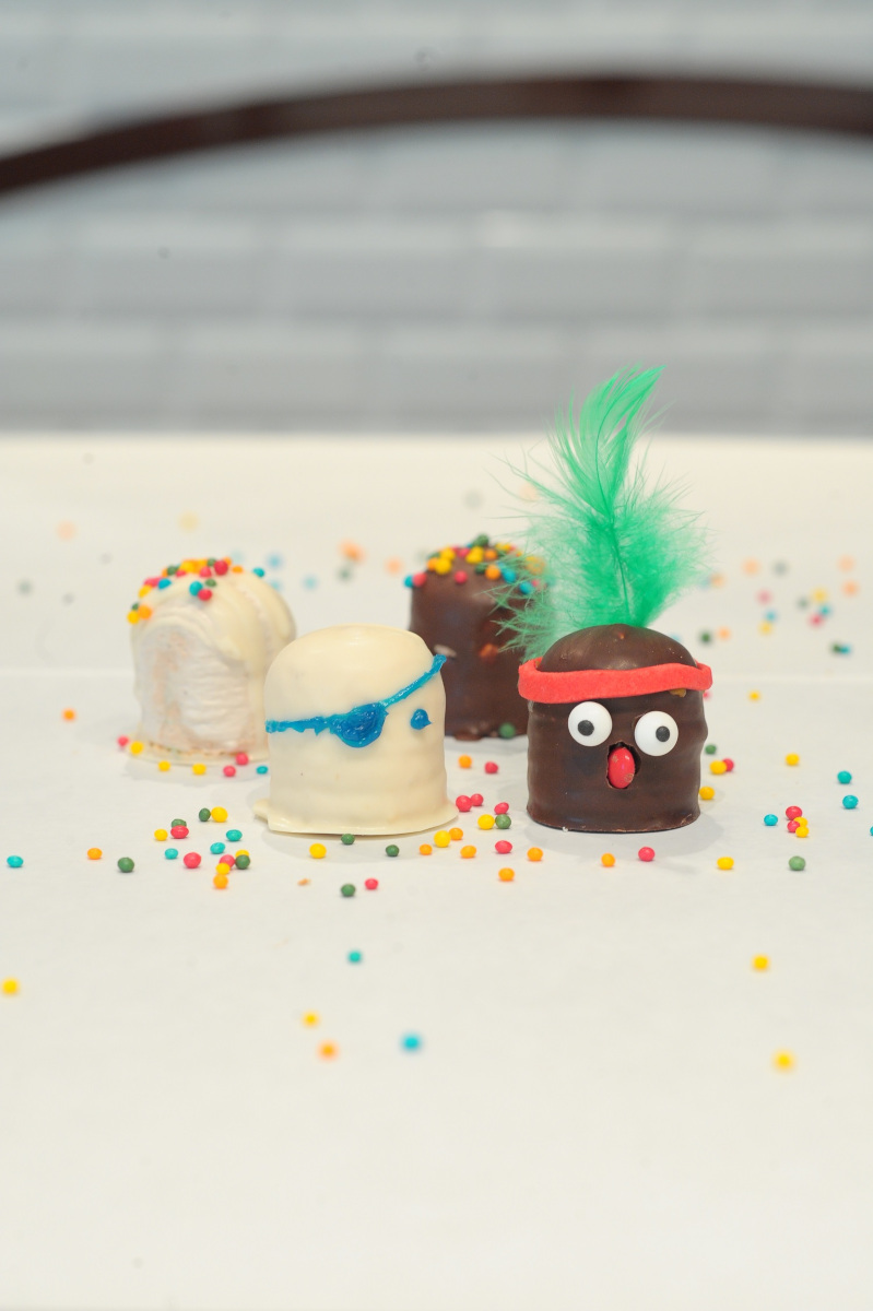 Unter Anleitung von erfahrenen Konditormeister*innen sind der Fantasie der Workshop-Teilnehmer*innen kaum Grenzen gesetzt: Schwedenbomben mit weißer oder dunkler Glasur können nach Belieben mit verschiedensten Toppings wie Schokolinsen, Streusel, Apfelringen und Co. verziert werden.