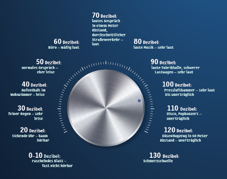 In der EU weisen Geräte wie MP3-Player und Smartphones eine Voreinstellung bei der Lautstärke von 85 Dezibel auf. Diese kann jedoch auf 100 Dezibel angehoben werden, was der Lautstärke eines Presslufthammers entspricht.