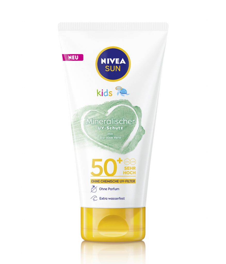 Mit dem neuen NIVEA SUN Kids Mineralischer UV-Schutz LSF 50+ und NIVEA SUN Mineralischer UV-Schutz Gesicht LSF 50+ gibt es nun den ersten Sonnenschutz von NIVEA, der gänzlich auf mineralische UV-Filter setzt und komplett ohne chemische Filter arbeitet.