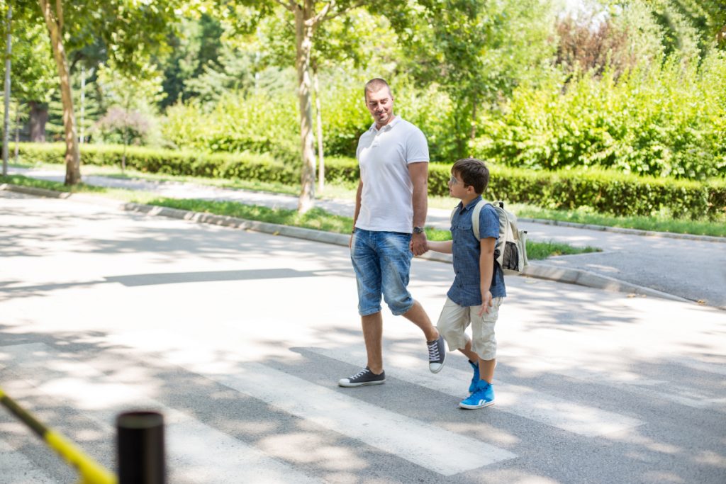 Üben Sie ein bis zwei Wochen vor Schulstart den Schulweg mit Ihrem Kind, zeigen Sie ihm dabei nicht den schnellsten, sondern den sichersten Weg.