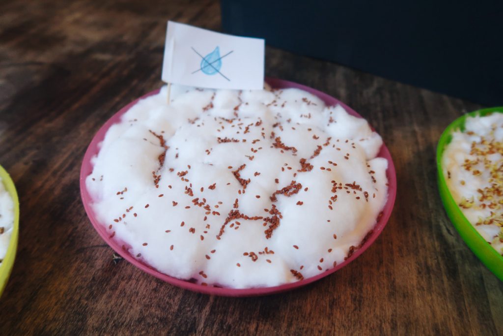 Das Tolle an diesem Gericht – ach was rede ich: die beiden tollen Dinge: zum einen muss man nur alle Zutaten klein schnippeln. Das dauert ungefähr zehn Minuten. Wenn man sich nicht hetzt. Und außerdem: Die Zubereitung nimmt auch nur weitere zehn Minuten in Anspruch! Dabei kommen die Zutaten einfach nur nach und nach in den Wok. Garniert habe ich mit Winterhecke und Radieschen. Während letzteres eher einfach zu kaufen ist: Wer keine Winterhecke ergattern kann, der nimmt einfach Frühlingszwiebeln.