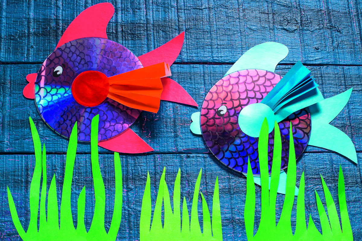 Unterwasserabenteuer am Teller! Ein Schinken-Käse-Brot als U-Boot, Weintrauben-Fischlein, Rucola-Algen und Flossen aus rotem Paprika sind alles, was du dazu brauchst.