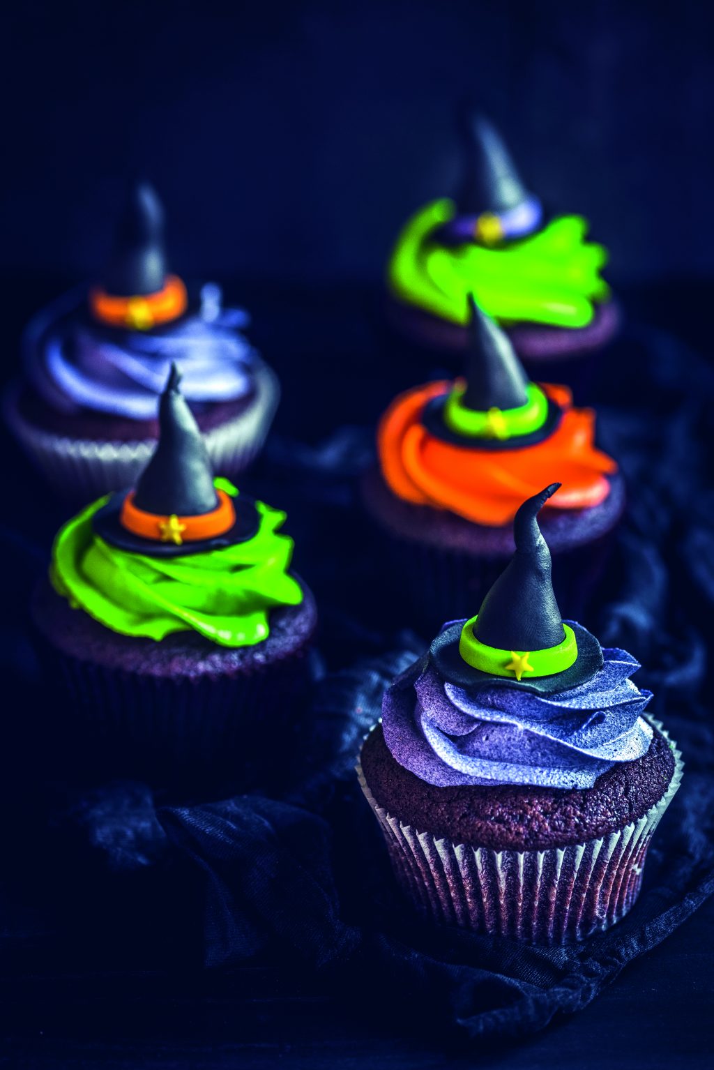 6. Die gehackten Walnüsse unterheben. Den Teig in die vorbereiteten Muffinförmchen füllen und ca. 20 – 25 Minuten im vorgeheizten Ofen backen. Da es sich hierbei um Brownies handelt, sollten sie im Innern etwas „feuchter“ (sprich: saftiger) bleiben als Muffins. Nach dem Backen aus dem Ofen nehmen und in der Form vollständig auskühlen lassen. Mit Creme der Wahl verfeinern, Schokohut aufsetzen, servieren.