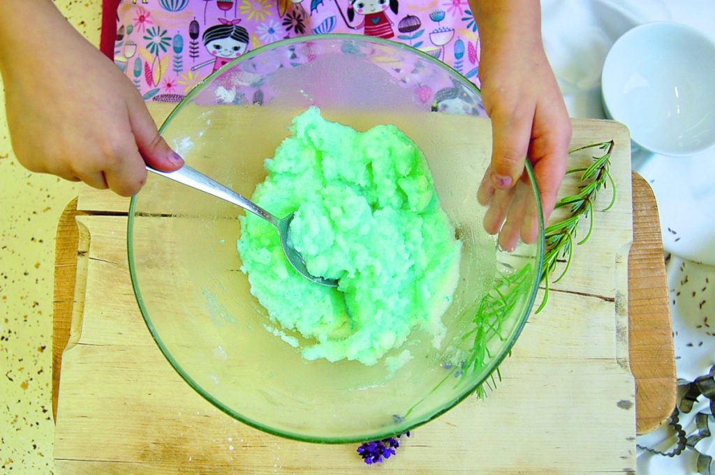 In der kühlen Jahreszeit gibt es nichts Besseres, als sich in der Badewanne aufzuwärmen. Außer vielleicht, den passenden Badezusatz ganz einfach selbst zu machen. Gemeinsam mit dem Nachwuchs macht das besonders viel Spaß. Unser Rezept für blubbernde Badepralinen kommt komplett mit natürlichen Zutaten aus: Mandelöl pflegt die Haut, Zitronensäure sorgt für einen spaßigen Sprudel-Effekt und Lebensmittelfarbe für buntes Badewasser. Und wer es gern duftig mag, kann ein paar Tropfen hautfreundliches Duftöl in die Badepralinen-Mischung geben. Die Zubereitung ist ganz einfach und dauert nicht länger als 15 Minuten, danach müssen die Pralinen nur noch aushärten. Und dann: ab in die Wanne!