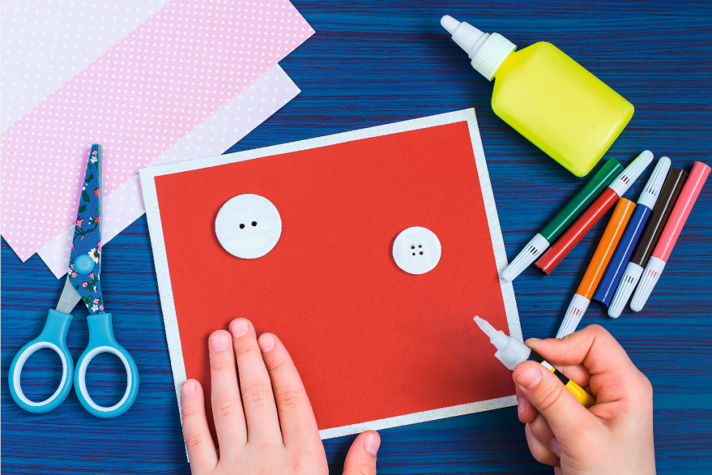 2. Klebe zwei Knöpfe auf deine Karte – einen großen und einen kleineren.
