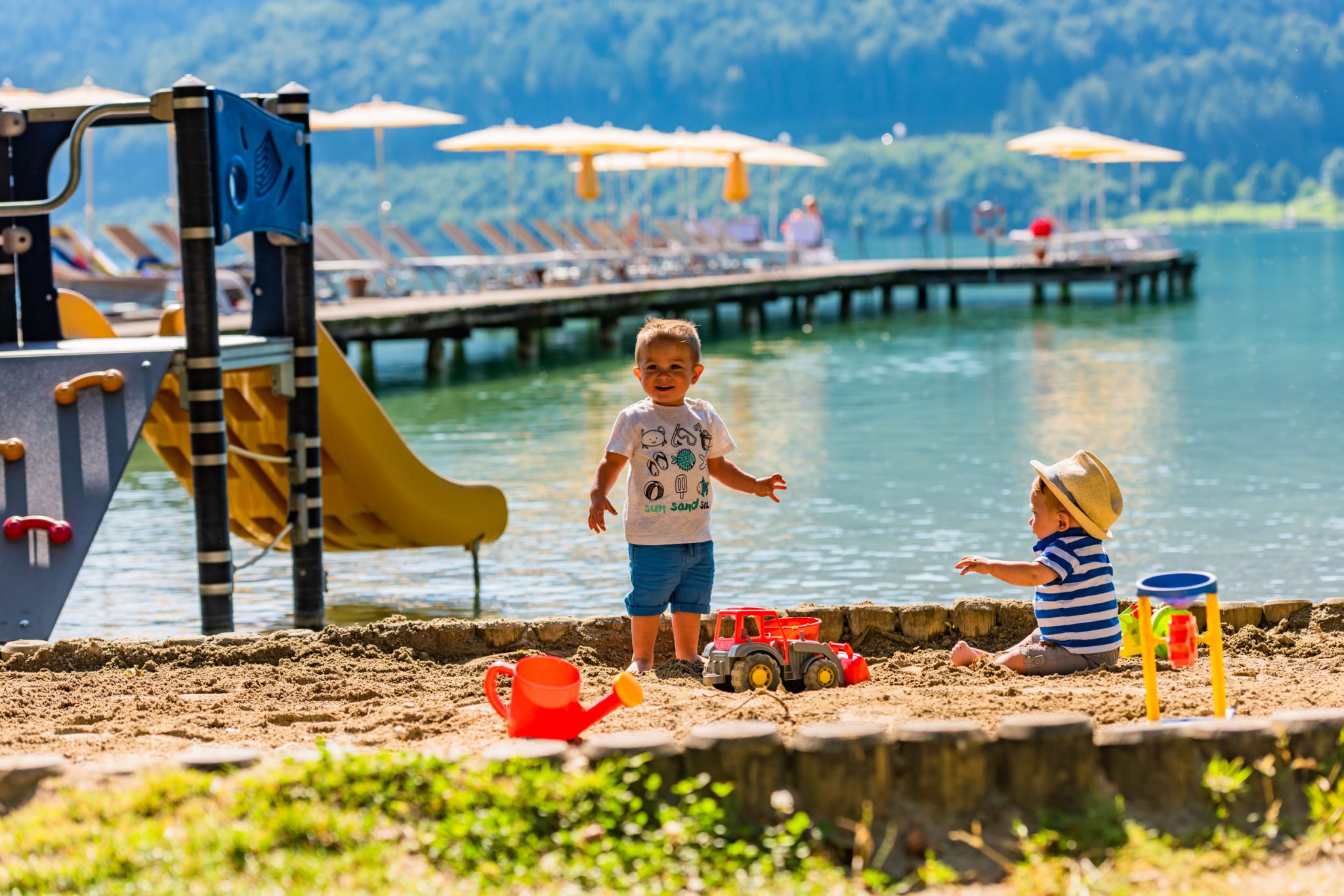Im idyllischen St. Kanzian in Südkärnten, direkt am türkisblauen Klopeiner See, liegt das familiär geführte Baby+Kinderhotel Sonnelino – ein Rückzugsort für Groß und Klein. Optimal ausgestattete Appartements sowie Einzel- und Doppelzimmer bieten genügend Platz für Familien mit kleinen Kindern, größere Geschwister oder sogar Oma und Opa. Das Herzstück des Hotels ist der liebevoll betreute Miniclub mit abwechslungsreichem Programm – von Traktor- und Bummelzugfahrten bis hin zu Schatzsuchen, Pizza-Partys und spannenden Experimenten. Der weitläufige Garten mit Spielbereichen und der private Strandabschnitt mit flachem Seezugang, Rutsche und Sandkiste garantieren Sommerfreude pur. Während die Kleinen bestens umsorgt sind, genießen Eltern Ruhe und Erholung im „Sonne See Spa“ des gegenüberliegenden Schwesterhotels Hotel & Spa Sonne.