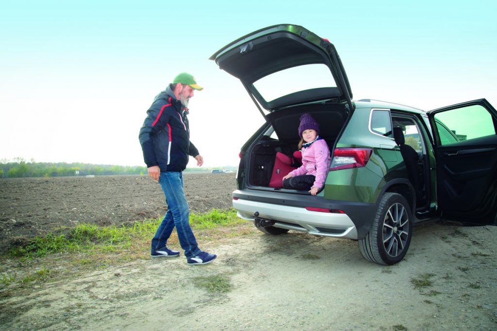 Im Kofferraum, der bei aufrecht stehenden Rückenlehnen bis zu 521 Liter fasst, würde sich Gert allerdings etwas mehr Platz wünschen: „Wir bringen den Kinderwagen zwar problemlos unter und auch weiteres Gepäck, aber man hätte das Kofferraumvolumen etwas größer und dafür die Rückbank etwas schmaler gestalten können.“ Der KAROQ bietet außerdem auch zahlreiche Konnektivitätdetails. So lässt sich das Smartphone unkompliziert mit dem großen 9,2-Zoll-Touchscreen verbinden. Alles in allem zeigt sich Familie Braschel mit dem KAROQ sehr zufrieden. Der hat sein Ziel erreicht: Abenteuerlust mit dem City-Alltag zu verbinden.