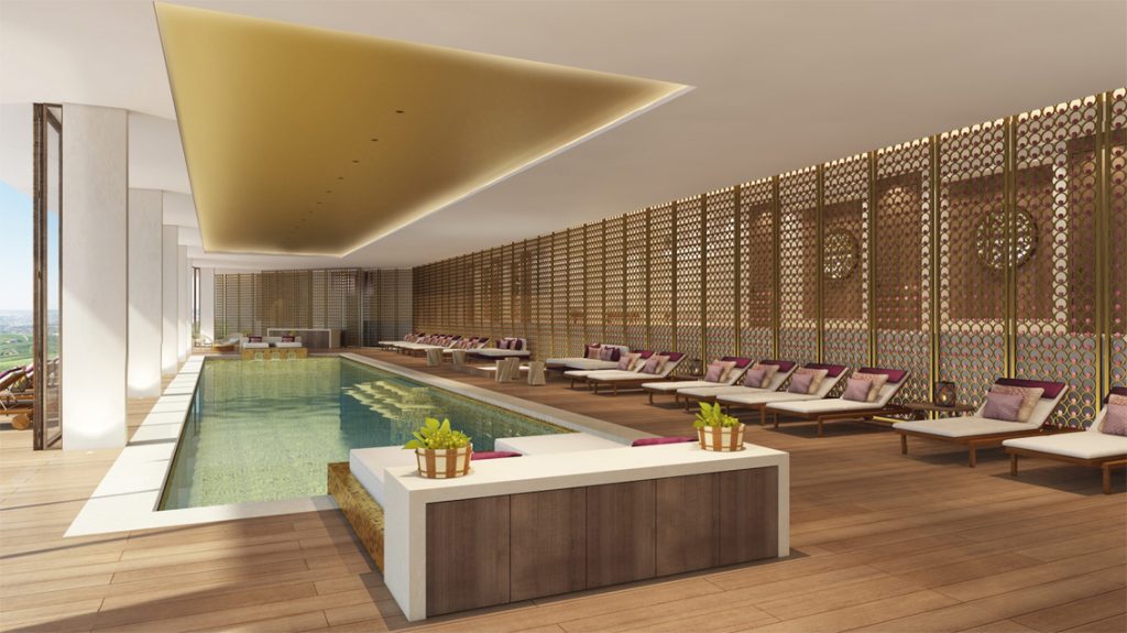 Eine neue Dimension für die Region eröffnet auch das wunderbare Spa, das sich weitläufig auf knapp 1.500 Quadratmetern erstreckt. In neun Behandlungssuiten verwöhnen Therapeuten mit den ausgesuchten Behandlungen und Produkten des renommierten Spa-Experten Biologique Recherche. Weiter gibt es ein modernes Fitness-Center, ein Yoga-Studio wohltuend in Holz gehalten, eine Eukalyptus-Sauna, eigne Studios für Maniküre und Pediküre sowie ein Hamam im traditionellen Mosaik-Design. Das wohltuende Erlebnis wird komplett mit den zwei geschwungenen Swimmingpools – einer indoor, einer outdoor. Beide wohltemperiert. Entspannen lässt es sich in den verschiedenen Relax-Lounges. Herzlich umsorgt mit gesunden und erfrischenden Drinks und Snacks.