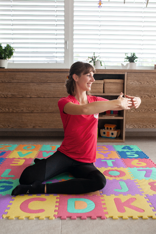 - Im Kniestand Dinge am Boden verrichten (z.B. Spielzeug einsammeln).