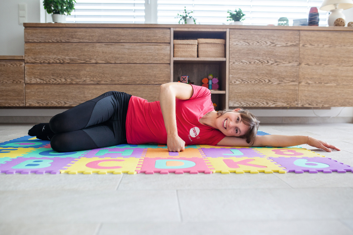 Wann trainieren – am besten in den Tagesablauf integrieren. Gerade als (mehrfache) Mama ist es nicht immer einfach, Zeit für rückbildungsorientiertes Training zu finden. Aus diesem Grund ist es umso wichtiger, die Tipps im Alltag zu beherzigen und auf eine bewusste Grundspannung, z.B. beim Heben und Tragen zu achten. Die folgenden Übungen erfordern lediglich eine weiche Unterlage und können neben bzw. mit Kind absolviert werden.