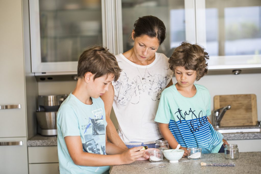 Claudia Schauflinger, 36, Autorin und Seminarleiterin zum Thema „Kinderhausmittel“, verheiratet mit Alexander, 39, Mutter von Samuel, 6, Simon, 10.