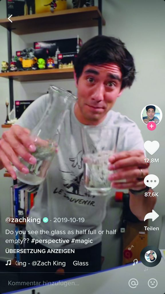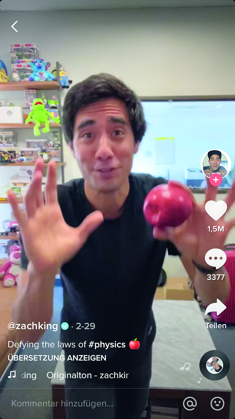 „Es gibt viele verschiedene Themen auf TikTok: Musik- und Tanzvideos, aber auch Comedy-Clips und Videos in denen Experimente gezeigt werden.“
