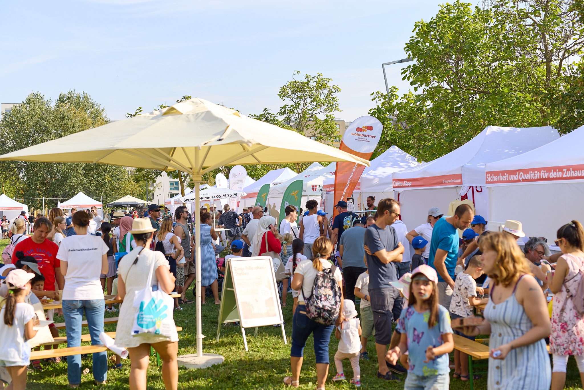 Der Tag des Wiener Wohnbaus wurde am Sonntag, dem 3. September im Rudolf-Bednar-Park mit einem Fest für die ganze Familie begangen. Die Besucher*innen konnten sich bei gemütlicher Atmosphäre beraten lassen und das umfangreiche Musik- und Unterhaltungsprogramm für Kinder und Familien genießen. Das breite Serviceangebot umfasste Infozelte und Servicestände der Geschäftsgruppe Wohnen, Wohnbau, Stadterneuerung und Frauen und stand auch heuer ganz im Zeichen von Services und Förderungen rund ums Wohnen. Mit dabei war heuer erstmals die Wiener Klima-Tour, eine interaktive Ausstellung zum Klimaschutz. Passend dazu hatte die Veranstaltung das Prädikat ÖkoEvent. „familiii“ war wieder mit seinem beliebten Glücksrad vor Ort und spielte Tausende Preise unserer Partner Die Wiener Volkshochschulen, H2O Therme Faber Castell, Dreh und Trink, Kindsgut, Ludwig Schokolade/Fritt und Kelly’s aus.