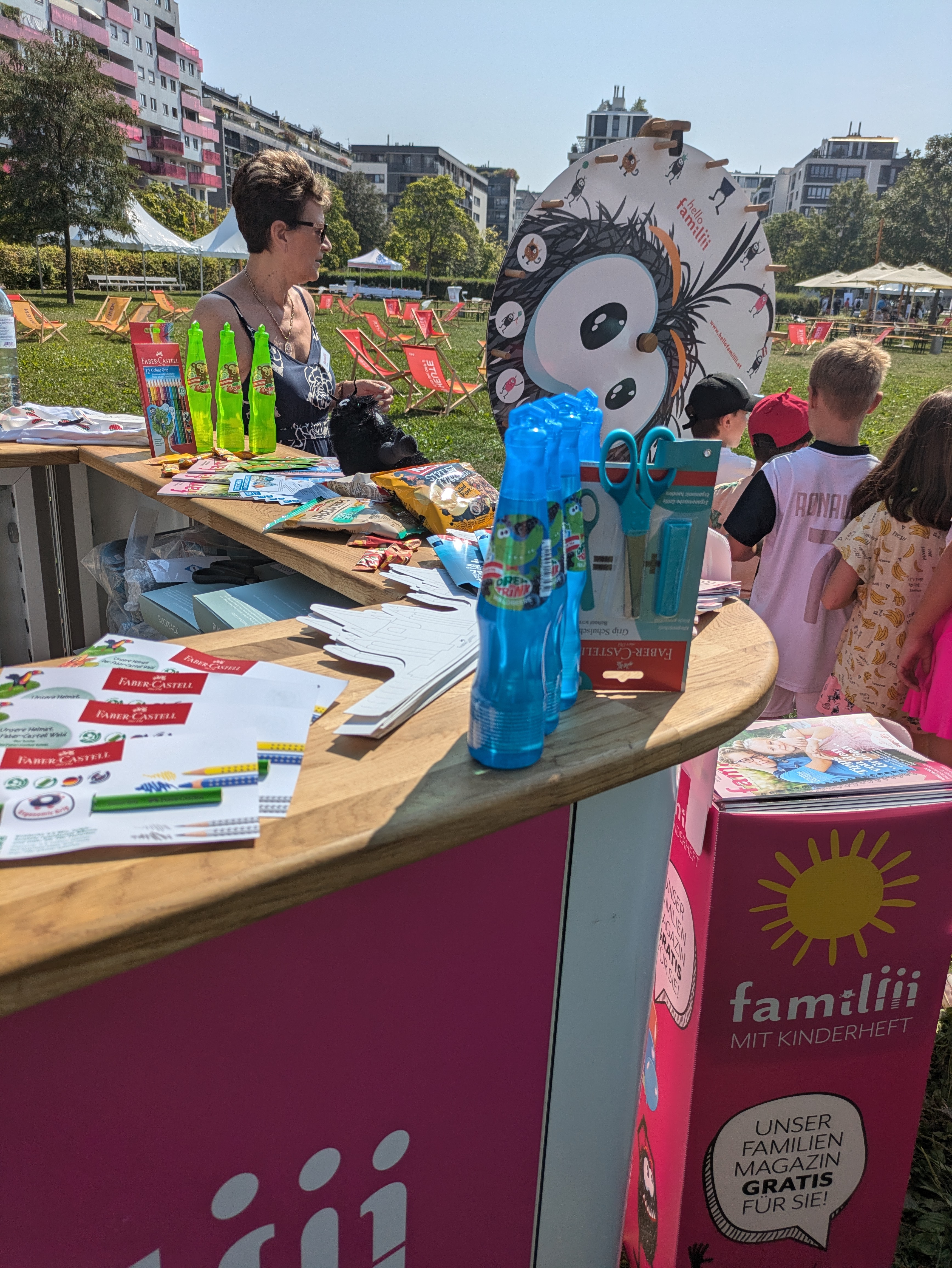 Großartige Stimmung beim Fest zum "Tag des Wiener Wohnbaus" im Rudolf-Bednar-Park in Wien-Leopoldstadt. Die Kinder waren vom Glücksrad am "familiii"-Stand begeistert.