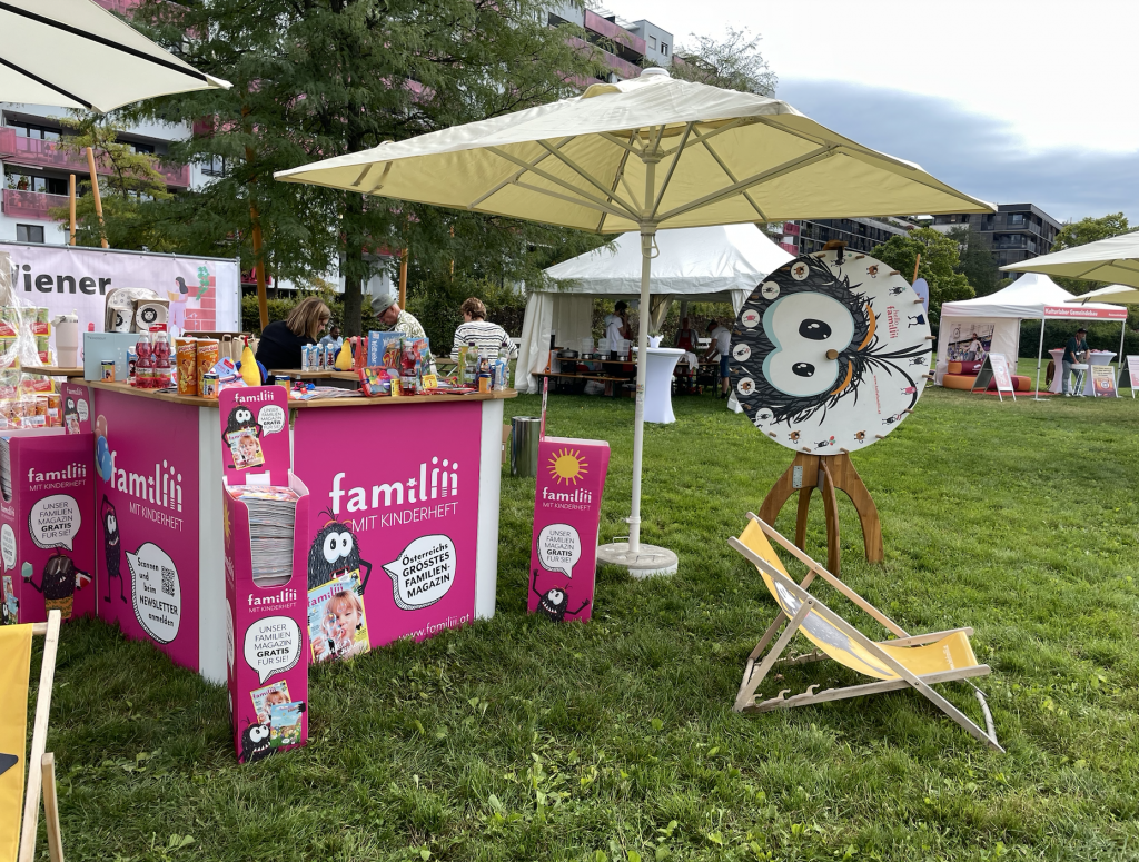 Großartige Stimmung auch in diesem Jahr beim Fest zum „Tag des Wiener Wohnbaus“ im Rudolf-Bednar-Park in Wien-Leopoldstadt. Die Kinder waren von den zahlreichen Aktivitäten und dem Glücksrad am „familiii“-Stand begeistert.