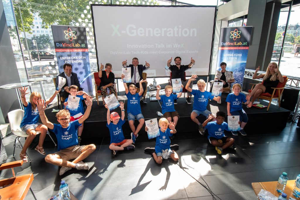 weXelerate und DaVinciLab luden zum ersten X-Generation Innovation Talk. Kinder und Jugendliche im Alter von 7 bis 14 Jahren präsentierten den Digitalisierungsexperten aus Wirtschaft, Forschung und Entwicklung ihre Prototypen für Apps und die Städte der Zukunft. Im Rahmen der Veranstaltung wurden die Ergebnisse der Forschungsstudie der ÖAW (Österreichische Akademie der Wissenschaften) präsentiert, die die Wirksamkeit der Lernformate von DaVinciLab und YouthHackathon für das Schulsystem bekräftigen.