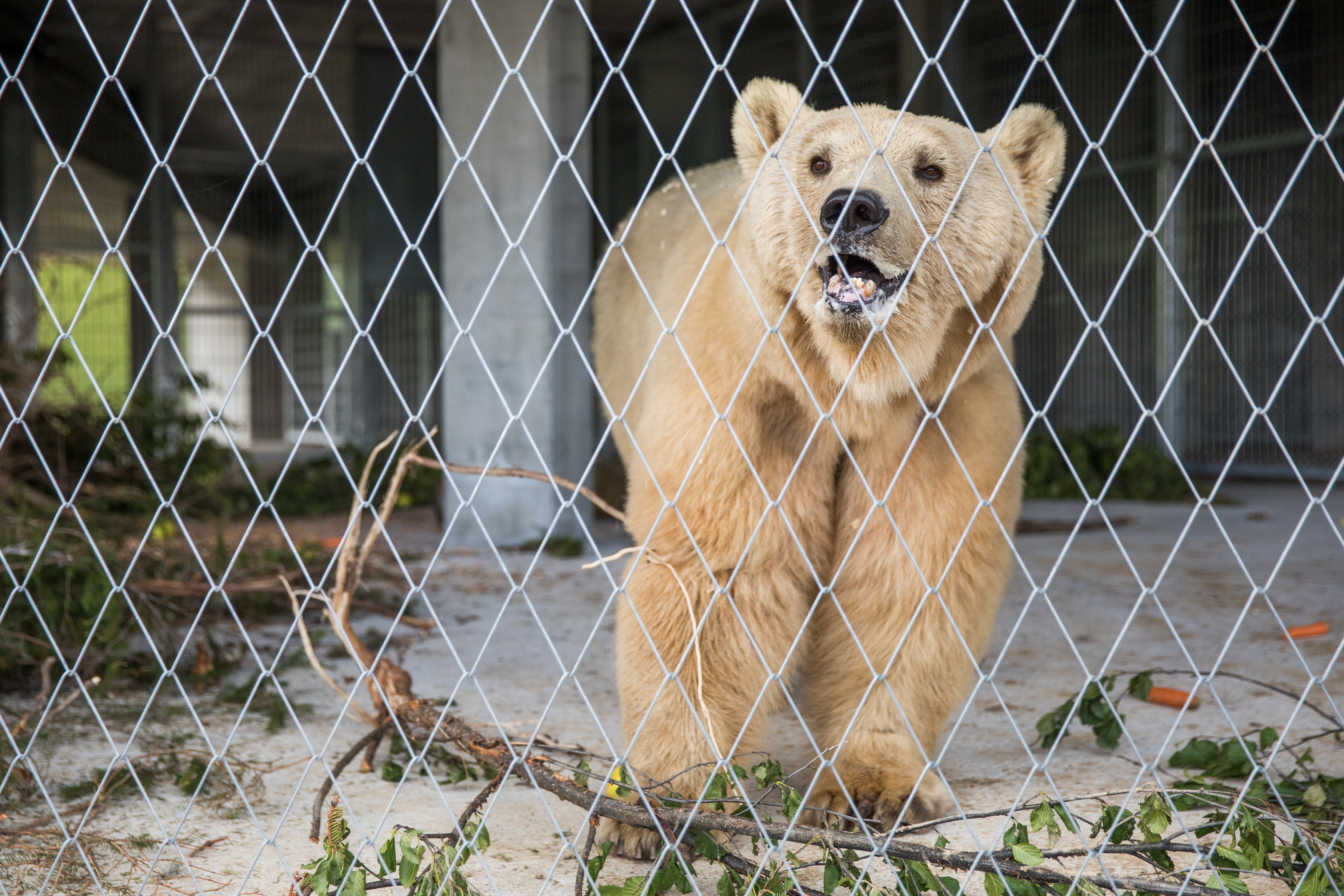 Napa wurde in einem Zoo geboren und kam vermutlich bereits als Jungbär zum serbischen Zirkus Corona. Ob er dort tatsächlich in der Manege auftreten musste, ist nicht bekannt. Da es in Serbien bereits seit 2009 ein Wildtierverbot in Zirkussen gibt, ist anzunehmen, dass er über Jahre hinweg in einem kleinen Käfig auf dem Areal des Zirkusses gehalten wurde. Nach seiner Konfiszierung mit Hilfe von VIER PFOTEN brachte die internationale Tierschutzorganisation ihn in Zusammenarbeit mit den Behörden vorübergehend im serbischen Zoo Palic unter, bis ein langfristiges Zuhause für ihn gefunden werden konnte. Umso erfreulicher ist es, dass dem aktiven und neugierigen Bären nun ein Leben inmitten der Aroser Bergwelt bevorsteht.
