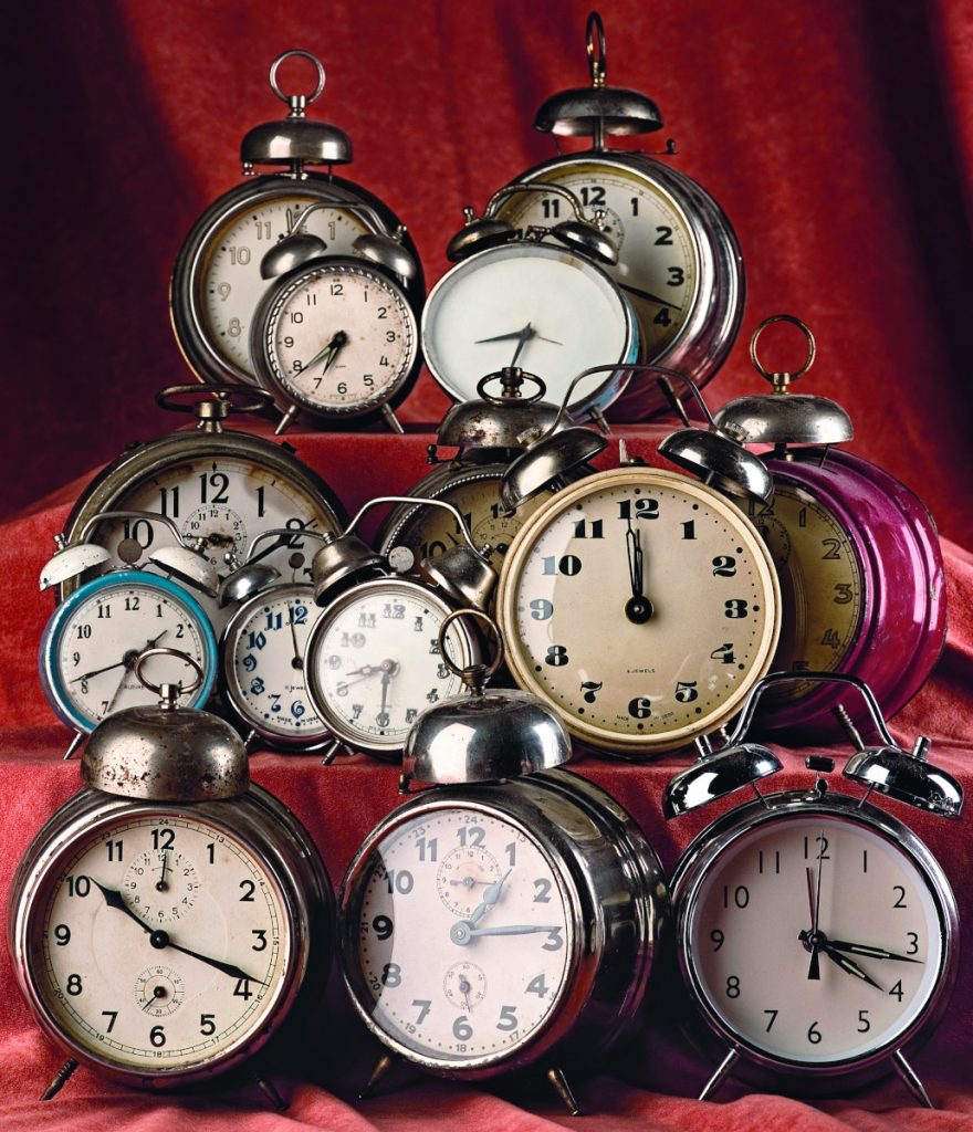 Kleinkinder leben im Hier und Jetzt. Bis zum Alter von etwa drei Jahren können Kinder mit Begriffen wie „vorher“ oder „nachher“ und erst recht mit Konzepten wie „gestern“ oder „morgen“ kaum umgehen. Sie erleben Zeit durch Wiederholungen: also durch gelernte Alltagsabfolgen wie etwa das morgendliche Badezimmerritual oder das tägliche Frühstück. Kleinkinder erleben ihren Tag auch nicht in Uhrzeiten oder einer Abfolge geplanter Zeitspannen. Erlebnisse und deren Abfolge sind es, was ihren Tag ausmacht. Etwa bis zum fünften Lebensjahr bekommen sie ein Gefühl für die unterschiedlichen Kategorien von Vergangenheit und Gegenwart und deren sprachliche Entsprechung – und lernen, Zeitangaben zu verstehen. Und meist erst gegen Ende der Volksschulzeit lernen Kinder, die Dauer vieler Handlungen halbwegs akkurat einzuschätzen und auch vorherzusagen, wie viel Zeit eine Handlung beanspruchen wird. Trotzdem kann man schon im vorschulischen Alter Interesse an Zeit und ihren Messgeräten wecken und die Entwicklung eines adäquaten Zeitgefühls fördern. Einerseits durch das Erwähnen von Uhrzeiten, andererseits aber auch durch mit Zeitangaben oder Zeitmessung verbundene Spiele und Aufgaben – zum Beispiel solche, die bis zum Verrinnen des Sands in einer Sanduhr geschafft werden können.