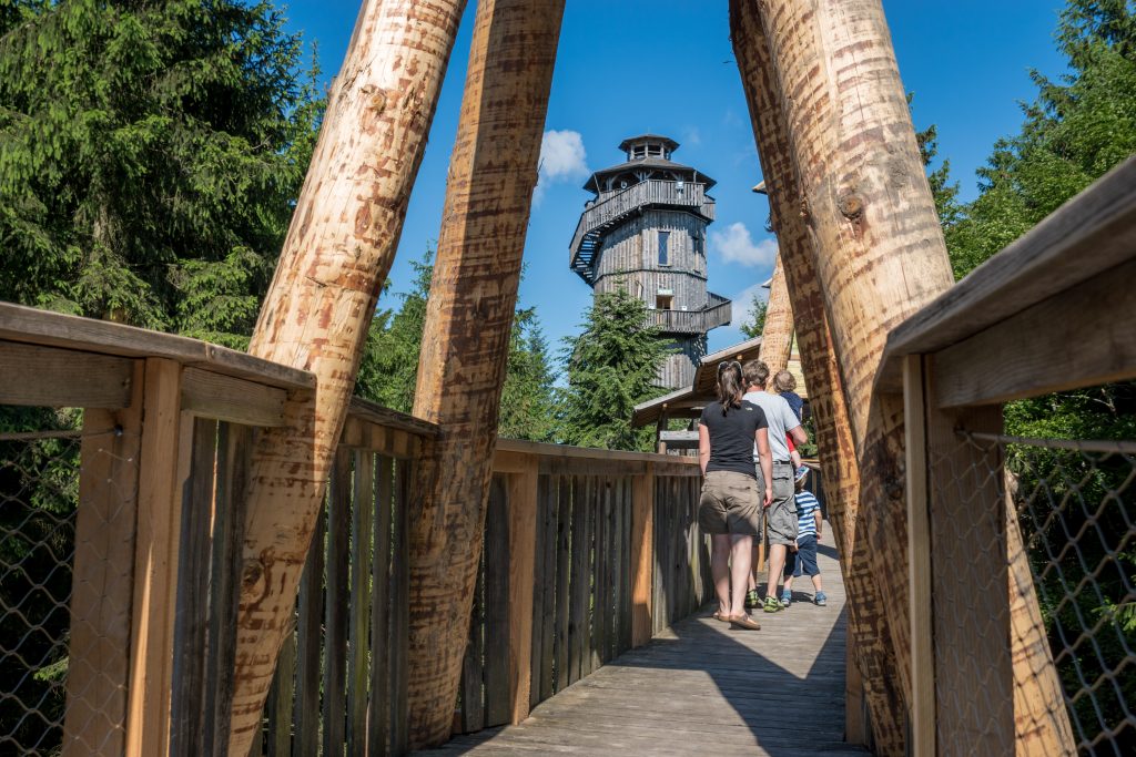 Kindergeburtstag einmal anderes feiern – in luftigen Höhen (40 Meter)! Ein Betreuer begleitet die Partygäste während der Feier am Baumkronenweg für ca. drei Stunden. Dieser Erlebnisweg zeigt ganz andere Perspektiven auf, 30 Stationen laden zum Spielen ein und vermitteln ganz nebenbei Wissenswertes zum Thema Wald. Auch der Kinderspielplatz mit Riesenrutsche und das gemütliche Würstelgrillen am Lagerfeuer werden alle Kids begeistern.