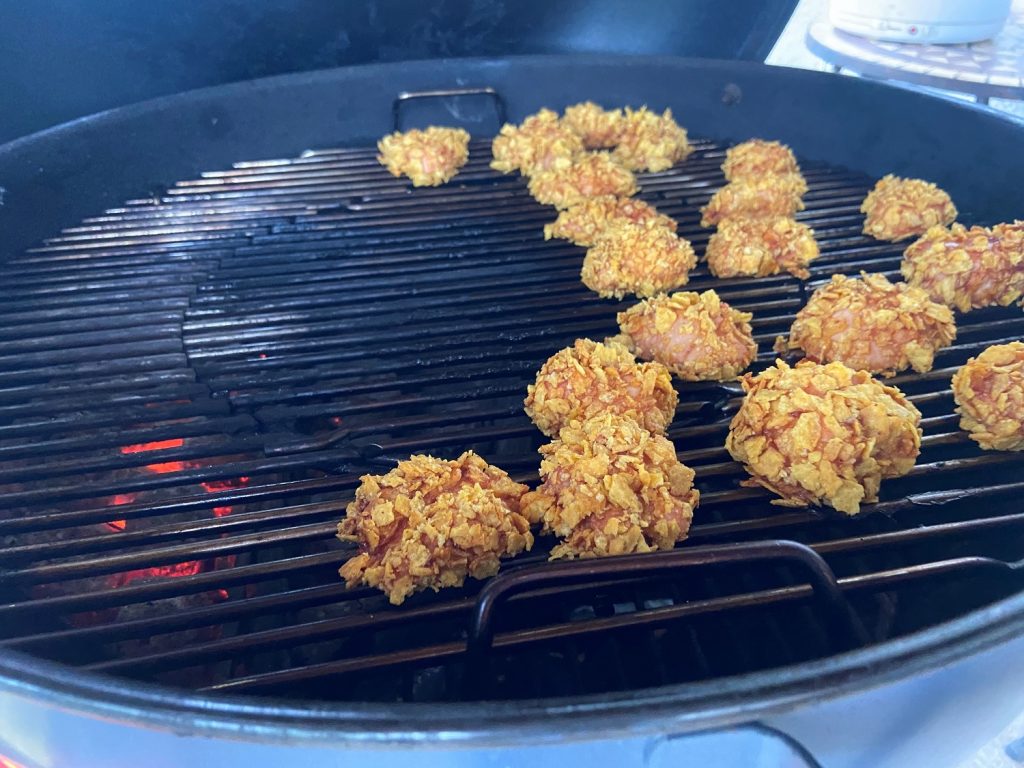 5. Legt die Nuggets in den indirekten Bereich eures Grills (auf 150 Grad vorgeheizt).
