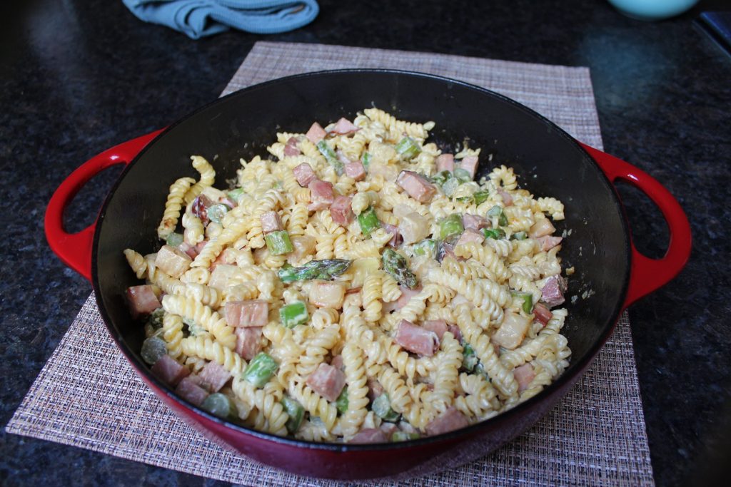 Die Frau am Grill: Onepot-Frühlings-Pfanne mit Spargel, Schinken & Pasta
