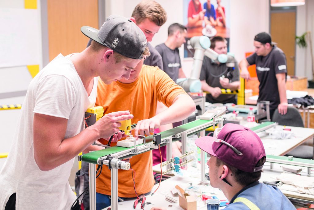So ist die Digitalisierung bereits ein wesentlicher Faktor in der Lehrlingsausbildung bei voestalpine Böhler Edelstahl. „Die Digitalisierung schreitet mit riesigen Schritten voran, weshalb es sehr wichtig ist, bereits die Lehrlinge dahingehend bestmöglich zu schulen und mit dem neuesten Stand der Technik von Anfang an vertraut zu machen“, erklärt Claus Mittendorfer, Geschäftsführer/CFO voestalpine Böhler Edelstahl. Den Arbeitnehmern von morgen muss schon heute die Angst davor genommen „und die digitalisierte Arbeit in der heutigen Zeit als selbstverständlich vermittelt, gelehrt und aufgenommen werden.“ Siemens bildet derzeit in Österreich rund 400 junge Menschen aus und hat die Lehrinhalte auf die neuen Rahmenbedingungen ausgerichtet: Disruptive Technologien wie Cloud Computing, Machine-to-Machine-Communication, additive Manufacturing, Netzwerktechnik oder Robotik sind heute fixer Teil der Ausbildung. In den Lehrwerkstätten finden sich 3D-Drucker, intelligente Industrieroboter und Modelle von Produktionsstraßen, an denen auch die Vernetzung und Datenübertragung erlernt werden kann.