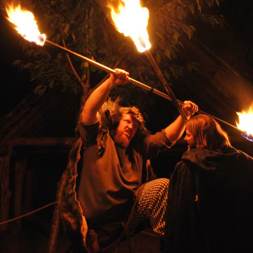 Flackernde Lichter, die in der Abenddämmerung entzündet werden, erhellen nur spärlich das archäologische Freigelände des MAMUZ Schloss Asparn/Zaya und tauchen es in eine mystische Atmosphäre. Für große und kleine Besucher:innen gibt es an diesem Abend viel zu erleben: Im Schein des Feuers werden fantastische Geschichten aus der keltischen Mythologie erzählt, mutige Krieger:innen zeigen die keltische Kampfeskunst mit Schwert und Speer, zudem gewähren Handwerker:innen in den historischen Behausungen und Werkstätten Einblicke in die keltischen Künste des Töpferbrands, der Glasherstellung, des Schmiedens, des Bierbrauens und der Textilfärbung mit Pflanzenfarben.