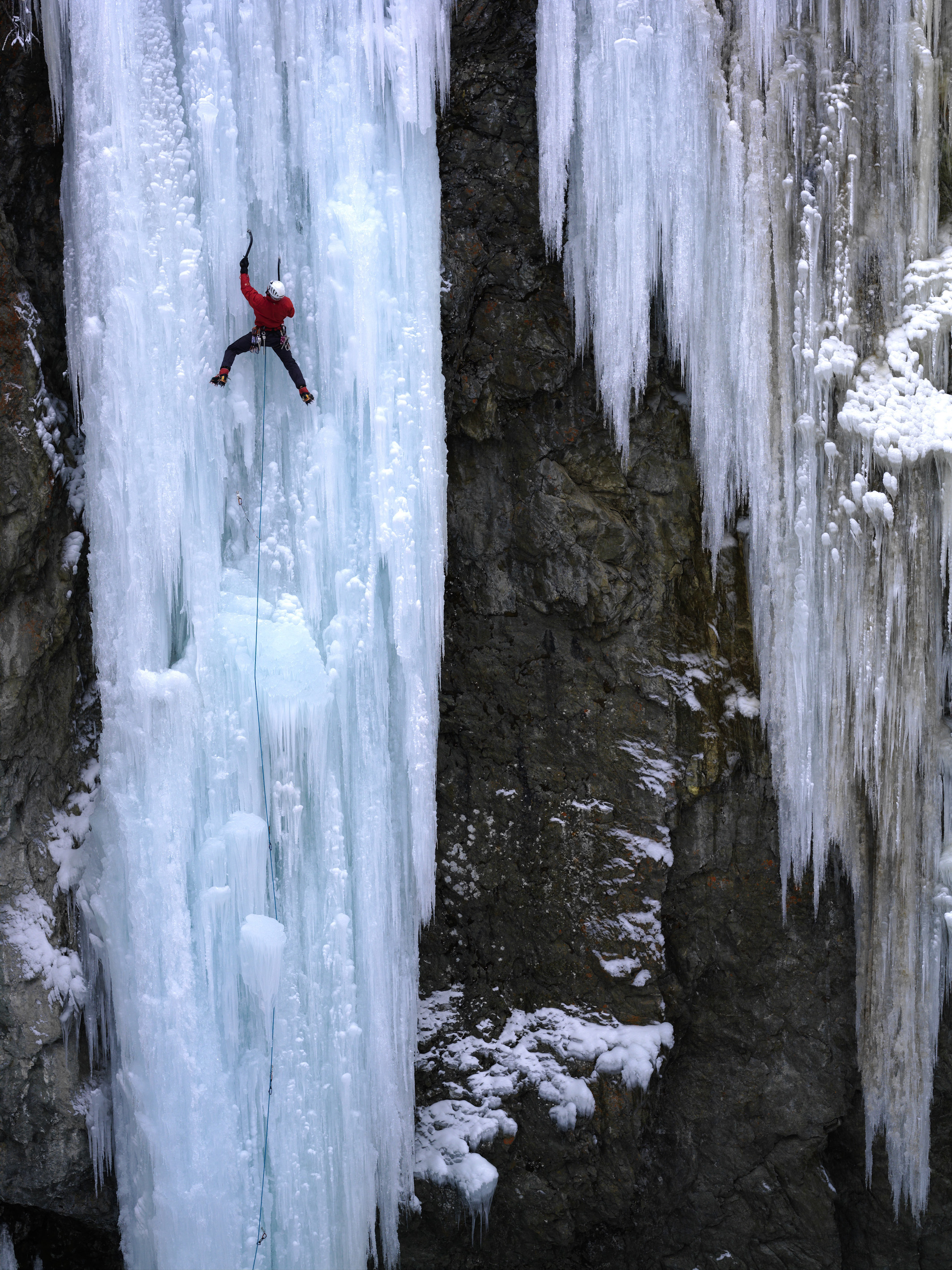 Eisklettern in der Schlucht von Pontresina (Graubünden)