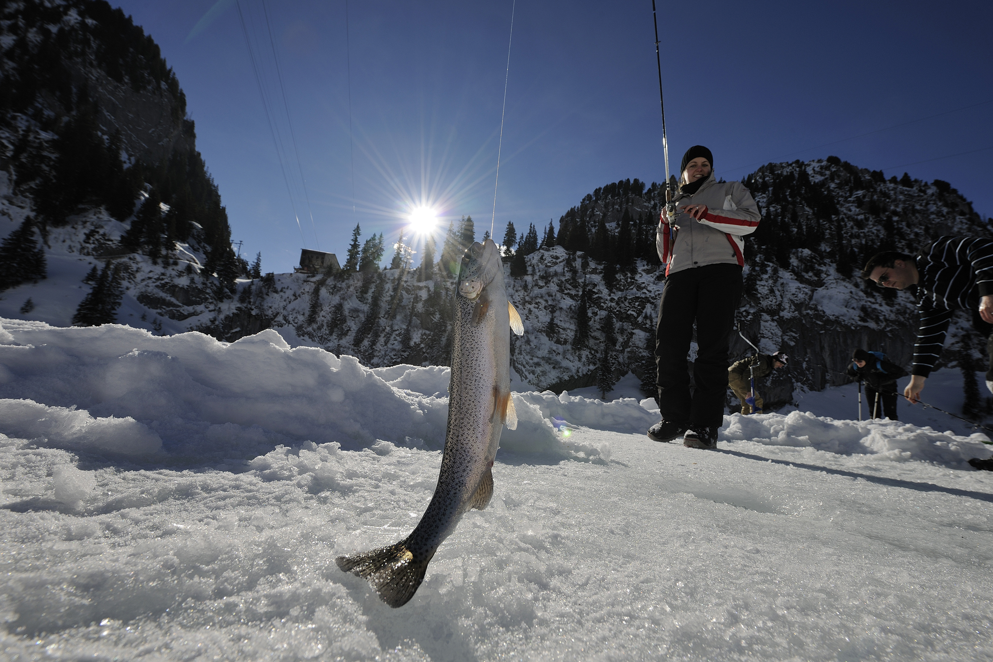 Eisfischen wird auch in der Schweiz immer beliebter. Ein Ort, der sich dafür besonders eignet, ist der Hinterstockensee. Mit einem Hocker, dem Eisbohrer und der Angel geht es auf den See. Und dann heißt es auf den (großen) Fang warten. Die gesamte Eisfisch-Ausrüstung kann in der Mittelstation der Stockhorn-Bahn gemietet werden, dort erhält der Fischer auch die Angelerlaubnis (Fischerpatent). Die Gebühr für die Erlaubnis beträgt 22 Schweizer Franken (rund 19 Euro), das Ausleihen der Ausrüstung (Angelrute, Eisbohrer, Köder, Taschenmesser) kostet 15 Schweizer Franken (rund 13 Euro). www.stockhorn.ch