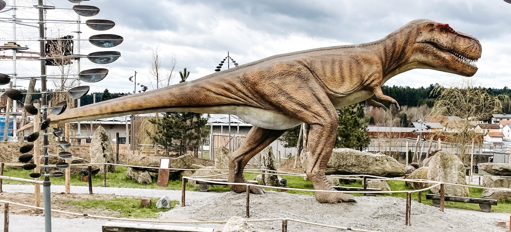 Die Top-Neuheit sind zehn, teilweise animierte Dinosaurier, die die Kinder in die Dinosaurier-Welt eintauchen lassen. Ein T-Rex, der in der Wand eines Hauses stecken geblieben ist, ein Quetzalcoatlus, der sich ein Nest gebaut und darin den Nachwuchs versteckt hat… Diese und viele andere Dinosaurier mehr gibt es bereits ab Saisonstart zum Beginn der Osterferien zu bestaunen. Ihren Platz bekommen die Dinosaurier in der ehemaligen Mystic Area, die in die Nähe der TIPI-SUITEN umsiedelt.