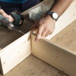 - Schritt: Alle Teile des Gerüsts des Insektenhotels sind aus Holzlatten (Glattkantbretter) mit 14 cm Breite und 2 cm Höhe gezimmert. Insgesamt braucht man hier etwa 8 Meter.