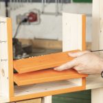 - Schritt: Die große „Präsidenten-Suite“ im Obergeschoß bekommt ein Vordach: Die vier 32 cm langen Stücke durch vorgebohrte Löcher mit Schaftschrauben befestigen.
