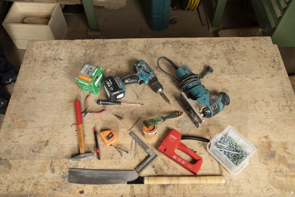 Die Heimwerker-Grundausstattung reicht, um ein Insektenhotel zu basteln. Bei den Holzschrauben sind solche mit Schaft zu bevorzugen.