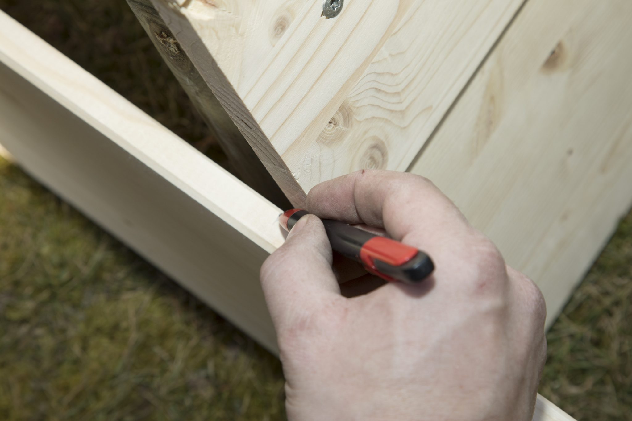 Dafür ist wieder an der Seite mit der Öffnung ein Brett an der Basis nötig.