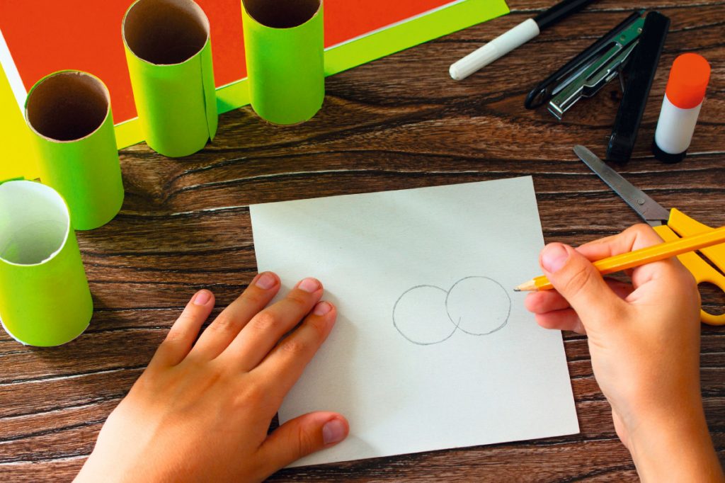 2. Zeichne dir auf weißem Papier die Augen der Raupe vor. Sie haben etwa die Form einer Acht.