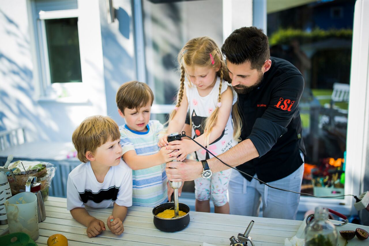 Von wegen, Kinder wollen immer nur gegrillte Würstchen. Wenn sie selbst bei der Zubereitung helfen dürfen, dann schmeckt es gleich viel besser. Besonders, wenn es so viel Spaß macht wie mit iSi-Geräten.