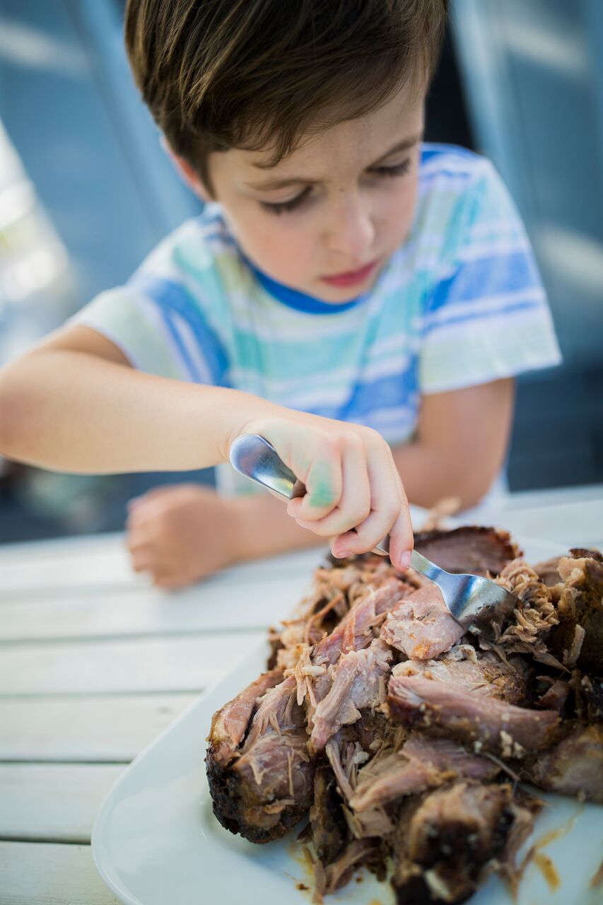 2. Danach sollte das Fleisch etwa eine Stunde ruhen (am besten eingewickelt in Alufolie), bevor es mit zwei Gabeln gezupft, also gepullt wird.