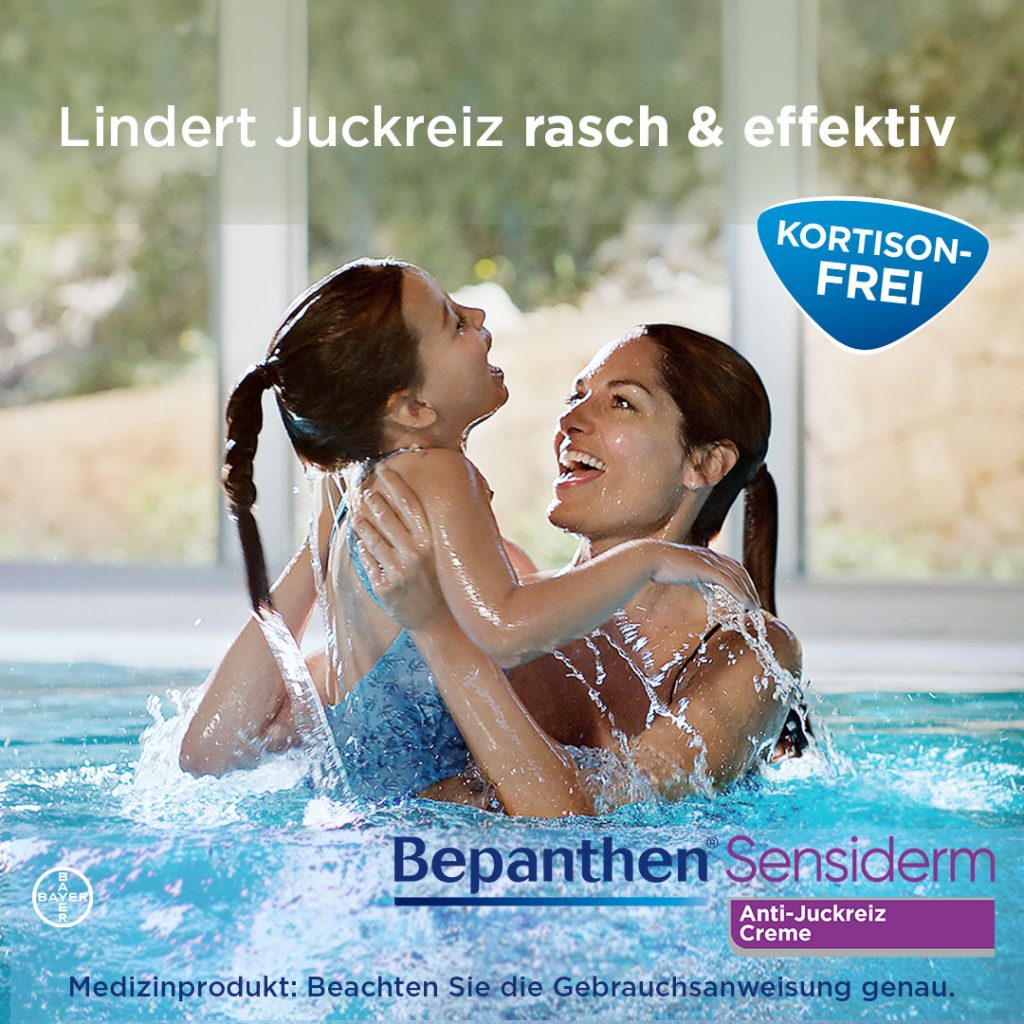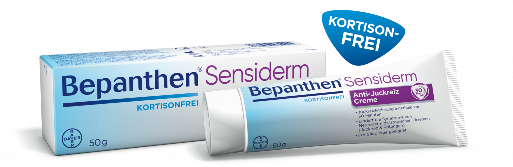 Bepanthen® Sensiderm Anti-Juckreiz Creme ist kortisonfrei und enthält keine Duft-  und Konservierungsstoffe. Sie wird zur Linderung von Rötungen und Juckreiz z.B. infolge von Neurodermitis/atopischen Ekzemen auf den betroffenen Hautstellen von Säuglingen (ab 1 Monat), Kindern und Erwachsenen angewendet. Sie ist sehr gut verträglich und kann auch während der Schwangerschaft und Stillzeit angewendet werden.