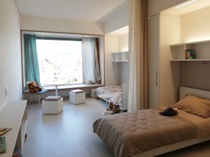 Das besondere Konzept von Kokon: die Einrichtungen werden genau auf die Bedürfnisse von Kindern und Jugendlichen zugeschnitten. Dipl-Ing. Claus Brunner, Geschäftsführer der REHA Bad Erlach Gmbh und der Kinder-Reha Rohrbach-Berg GmbH: „Mehr noch als bei den Erwachsenen müssen wir den Kindern in der Zeit ihrer Reha ein heimeliges Umfeld schaffen, das keine Angst macht. Auch dafür war das Vorbild der Kokon, in dessen Geborgenheit das Wachstum des Schmetterlings möglich ist. Die Gebäude sind nicht nur die Hüllle für alle Maßnahmen, die für die Kinder gesetzt werden, sie sind Teil der Therapie und wurden mit dem Behandlungskonzept gemeinsam weiterentwickelt. Die räumliche Trennung zum Krankenhaus ist sehr wichtig und es muss ein Zuhause-Gefühl entstehen.“